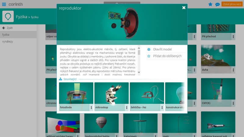Corinth Fyzika obsahuje cca 260 vizuálních modelů v podobě 3D modelů, animací a hlubokých zoomů !