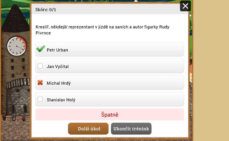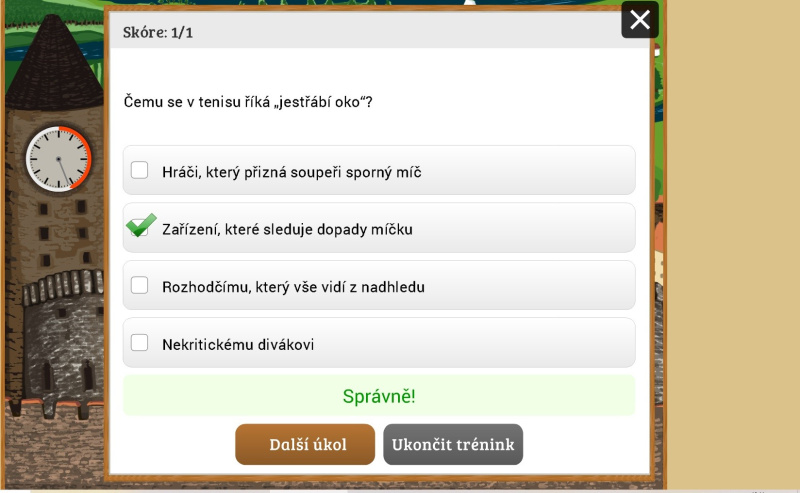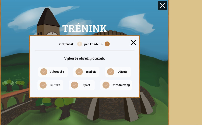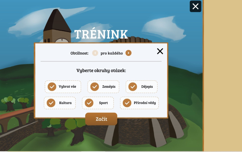 Kromě hry program umožňuje také trénink. Žák si zvolí typ úkolů (otázka, spojovačka, skládačka) a z nich je potom zkoušen. Počítač přitom zaznamenává jeho skóre.