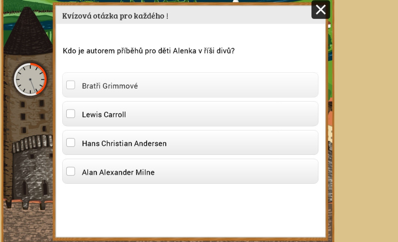 - Kvízová otázka se čtyřmi nabídnutými odpověďmi